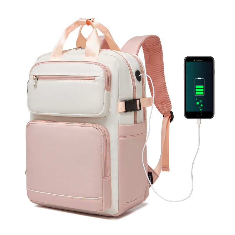 Cestovný vodeodolný batoh na notebook 15,6" Kono - růžovo-béžový - 19 L
