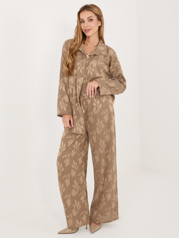 Kesi Włoski souprava s blůzkou a širokými kalhotami béžová