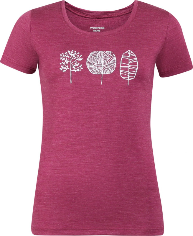 Dámské merino triko PROGRESS Vinka Trees ostružinová Velikost: XL