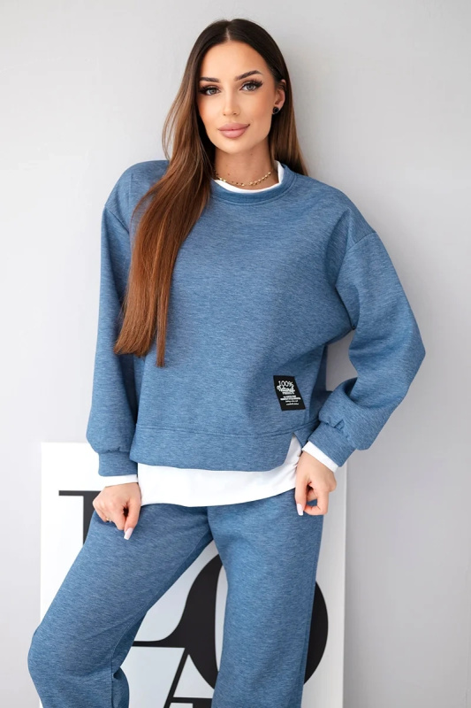 Kesi Włoski Dámský komplet s volnou mikinou a tepláky máslový jeansový melír