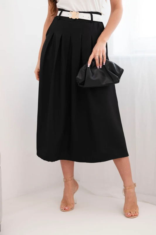 Dámská viskózová sukně s páskem a sklady černá