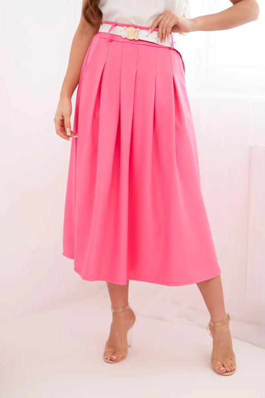 Růžová midi sukně s plisováním a páskem