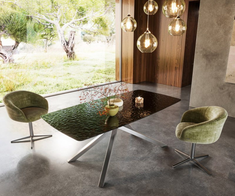 Jídelní stůl Edge 200x100 reliéfní sklo kouřové černé 3D design kovová