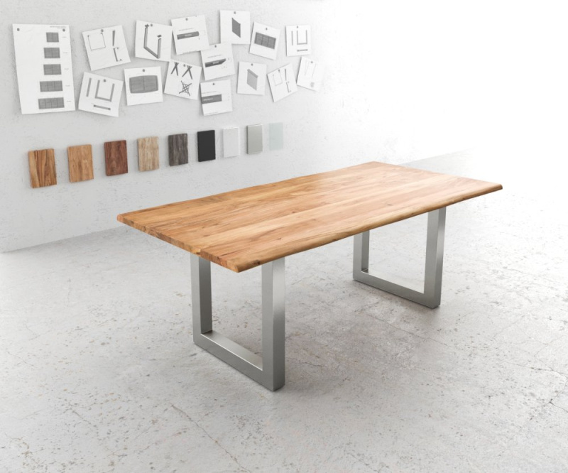 Jídelní stůl Edge 200x100 přírodní akácie nerezová ocel úzká podnož