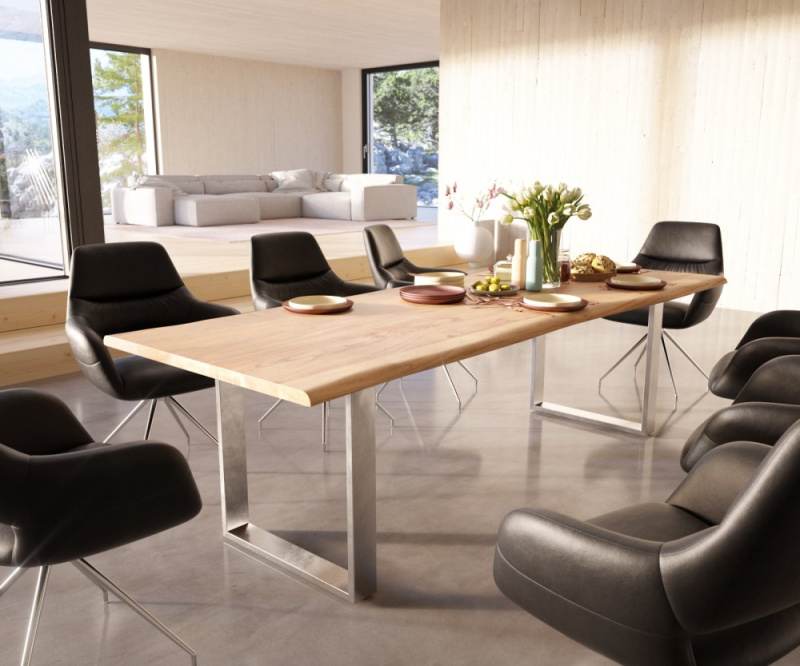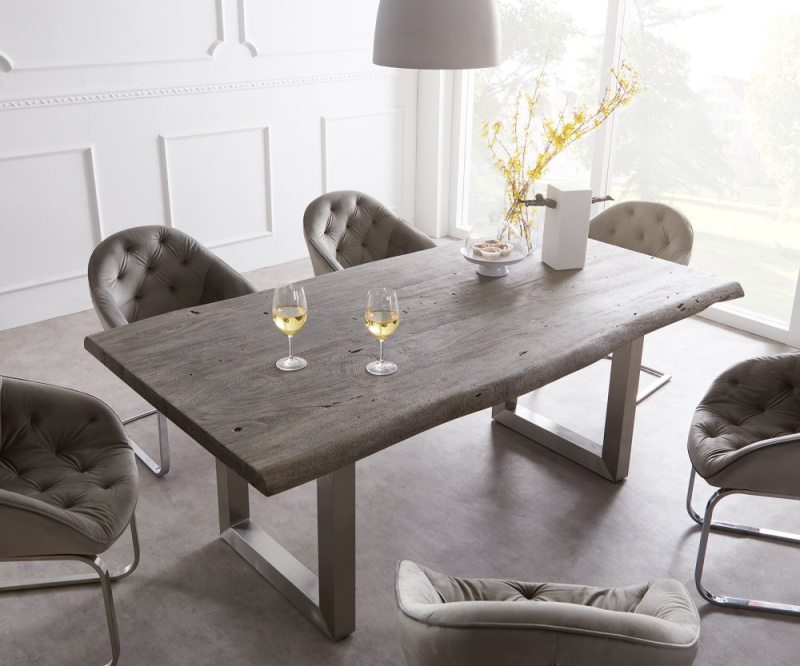 Jídelní stůl Edge 200x100 XL akácie platina nerezová ocel široká