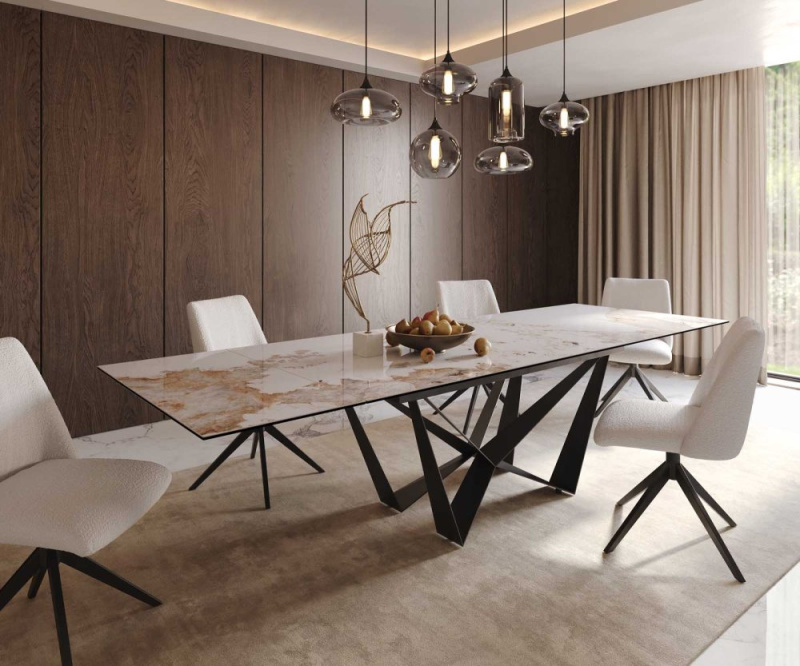 Jídelní stůl Edge 300x100 keramika Laminam® Sabbia podnož ve tvaru "V"