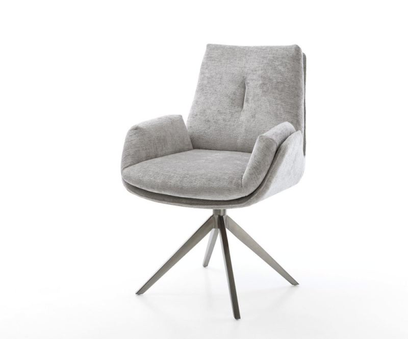 Otočná židle Heira-Flex s područkami Bouclé stříbrnošedá Křížový rám