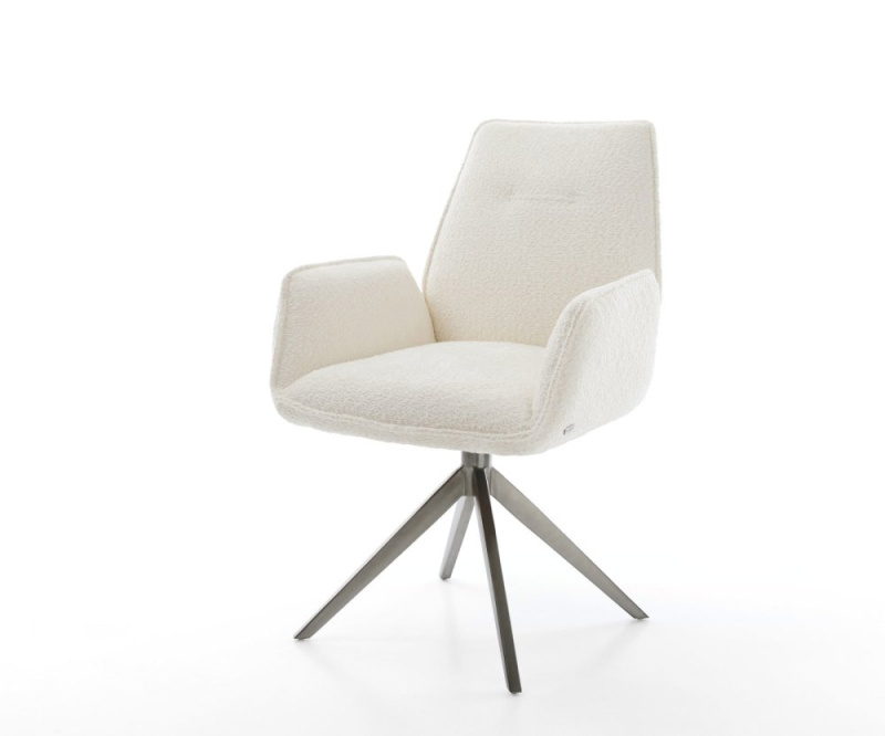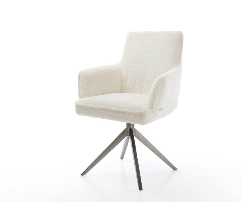 Otočná židle Heira-Flex s područkami Bouclé bílá Křížový rám široký