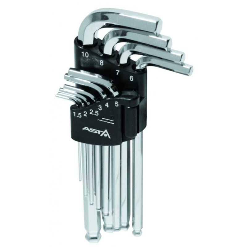 Klíče Imbus s kuličkou zahnuté, 1.5-10 mm, sada 10 ks - ASTA