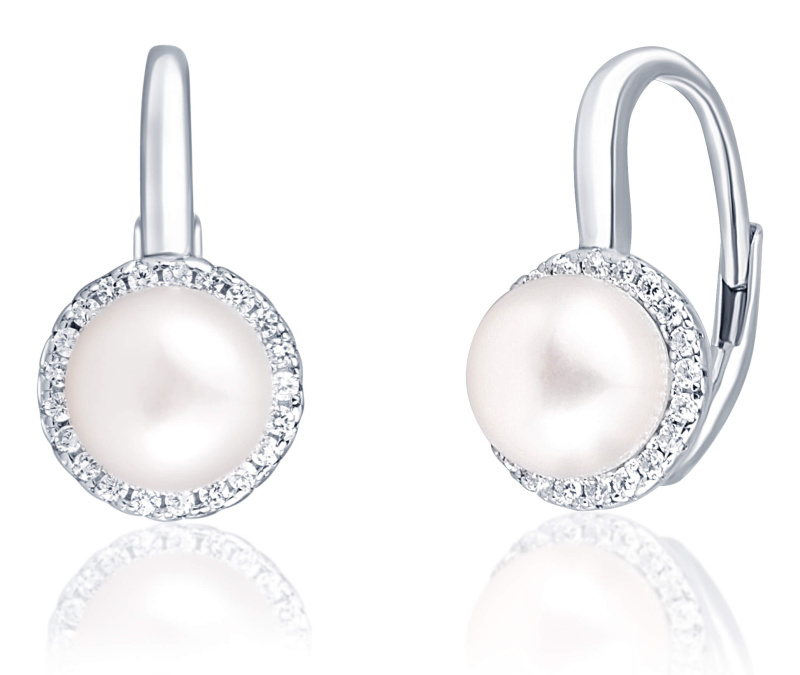 JwL Luxury Pearls Elegantní stříbrné náušnice s perlou a zirkony JL0640