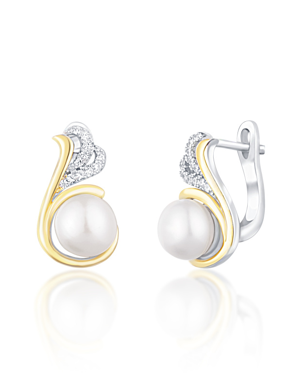 JwL Luxury Pearls Stříbrné bicolor náušnice s pravými perlami a zirkony JL0720
