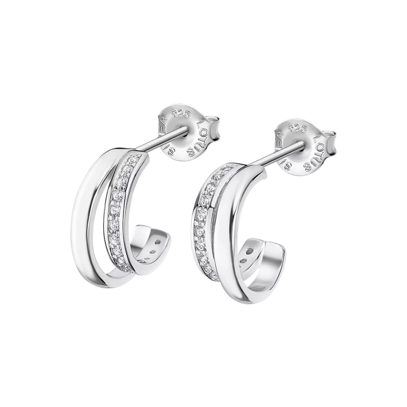 Lotus Silver Třpytivé stříbrné náušnice kruhy s čirými zirkony LP3285-4/1