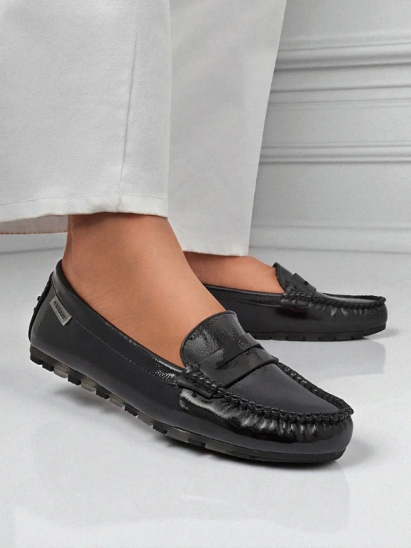 Resti Women's Cyra Nero Moccasins made of patent eco-leather, classic Italian style