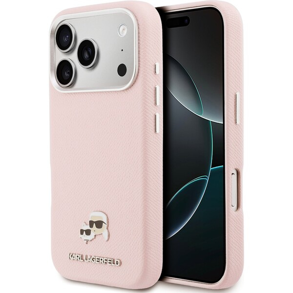 Karl Lagerfeld PU Karl and Choupette Heads Pins MagSafe kryt iPhone 17 Pro růžový