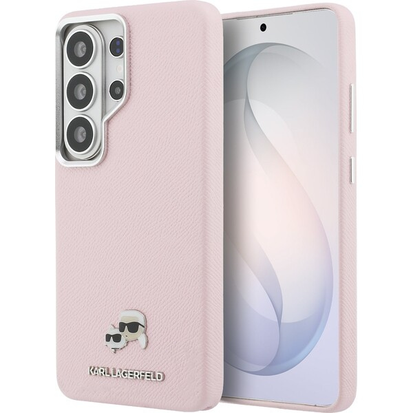 Karl Lagerfeld PU Saffiano Metal Logo and Frame Zadní Kryt pro Samsung Galaxy S25 Ultra Pink