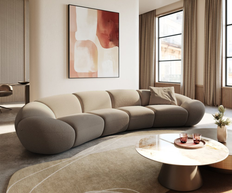 Velká pohovka Lunna 360x175 cm bouclé smetanovo-bílá 2 polštáře