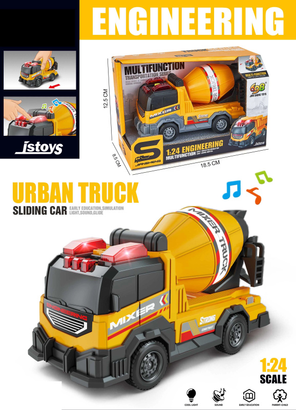 Dětská míchačka betonu se světly a zvuky, třecí pohon