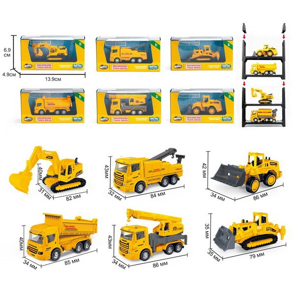 Stavební auta s natahovacím pohonem, 6 ks