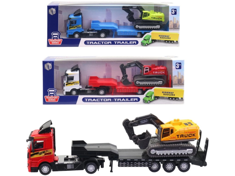 Kovový tahač s přívěsem a bagrem 26 cm