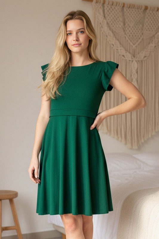Krásná mamka Kojicí šaty Amalie MODAL deep green volánek Velikost: L