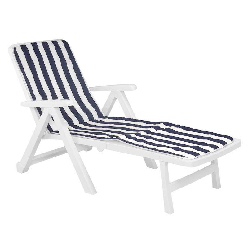 Zahradní lehátko s polštářem, skládací, bílá/vzor pásek, SMERDO 2