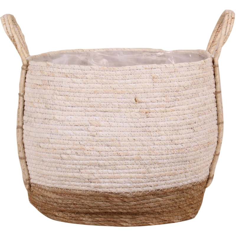 Košík s uchy ze slámy a mořské trávy, bílá, pr. 32 x 28 cm