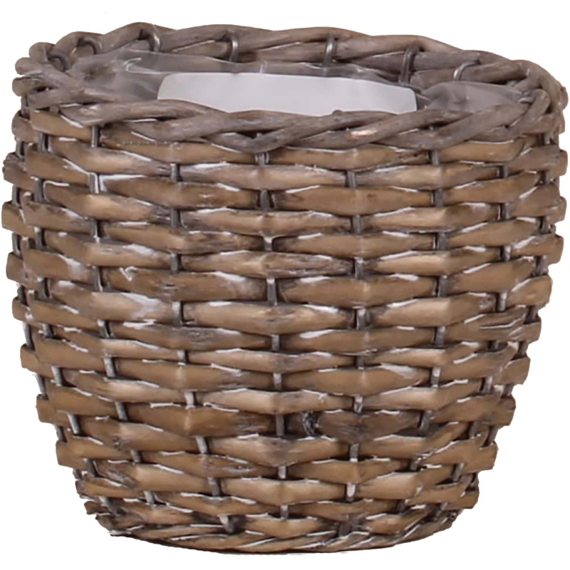 Obal na květináč z vrbového proutí s PE sáčkem šedý 19 x 16 cm