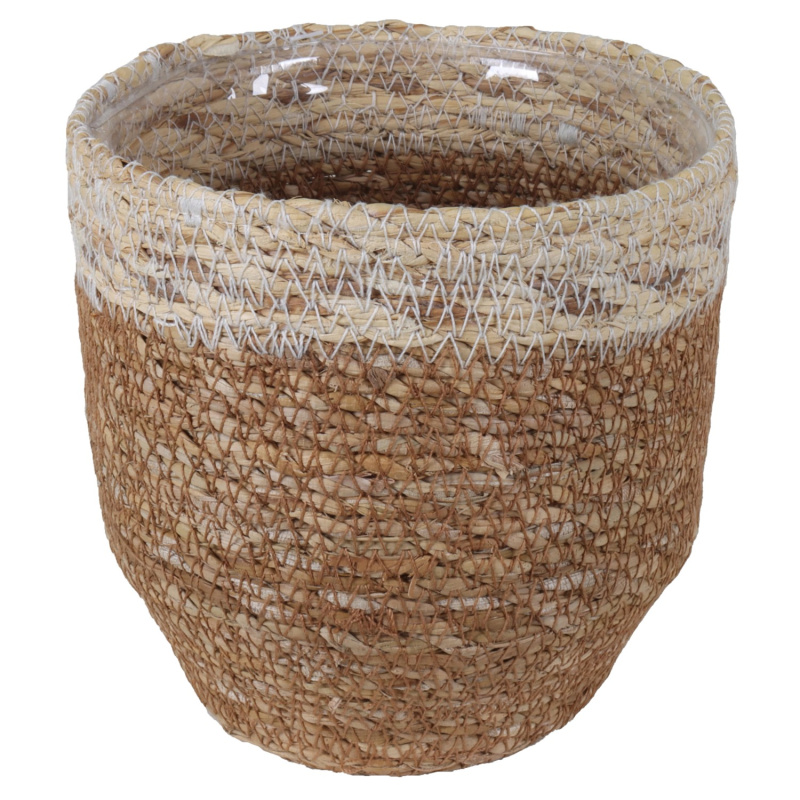 Obal na květináč z PP s vodním hyacintem, přírodní, 40 x 32 cm