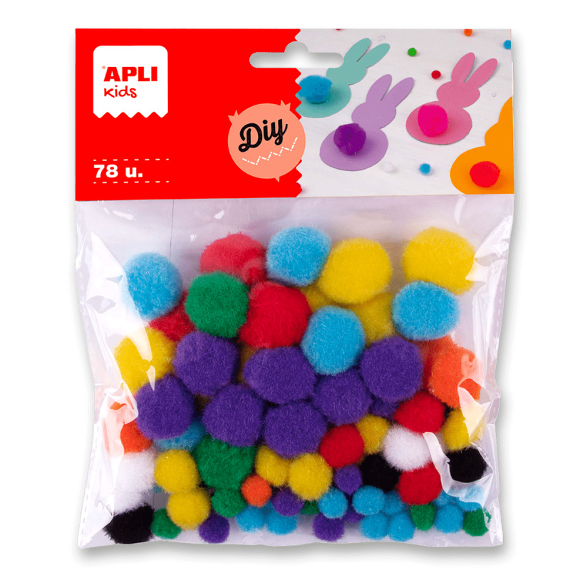 APLI Dekorativní Pom-pom kuličky 78 ks, barevný mix