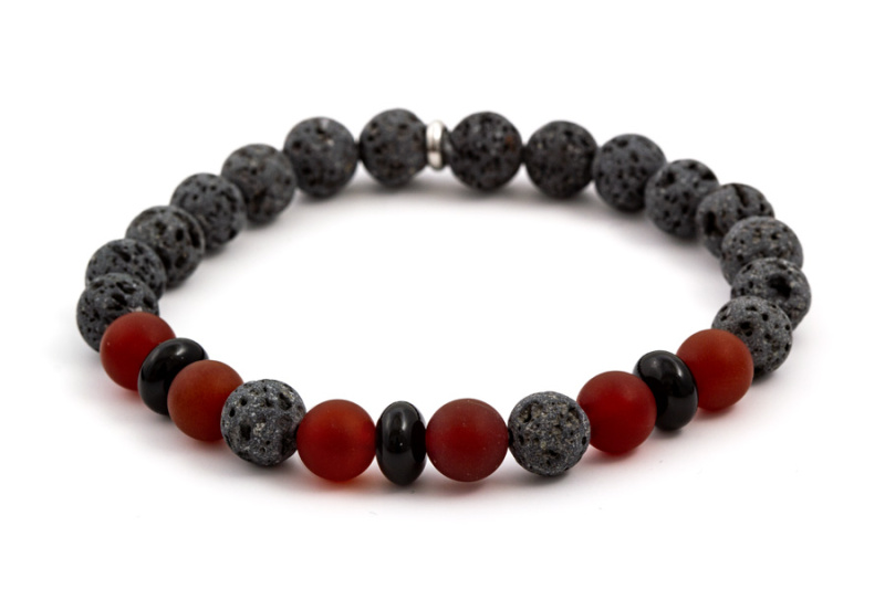 Agato Korálkový náramek z onyxu, lávového kamene a karneolu MINK65 17 cm
