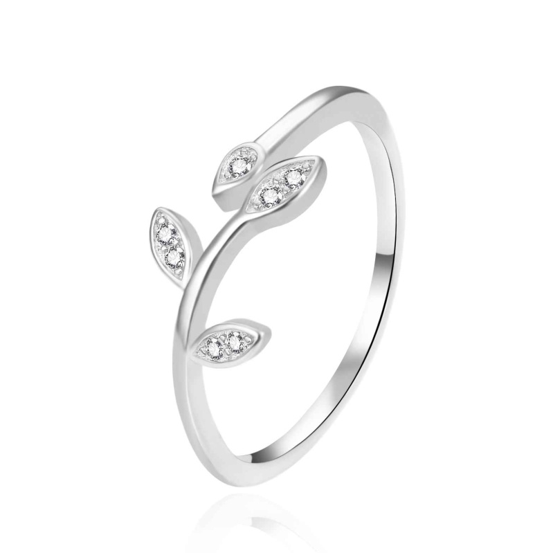 Agato Třpytivý stříbrný prsten s lístečky AGT-R65W 58 mm