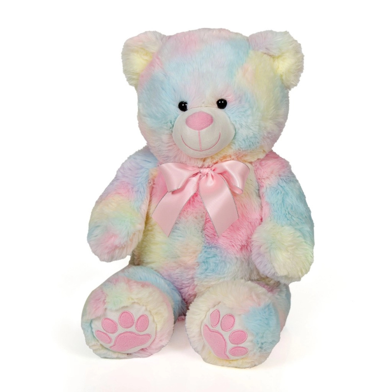 Plyšový medvěd duhový 60 cm s růžovou mašlí