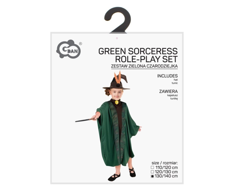 Dětský kostým kouzelníka a čarodějky – zelený (110–120 cm)