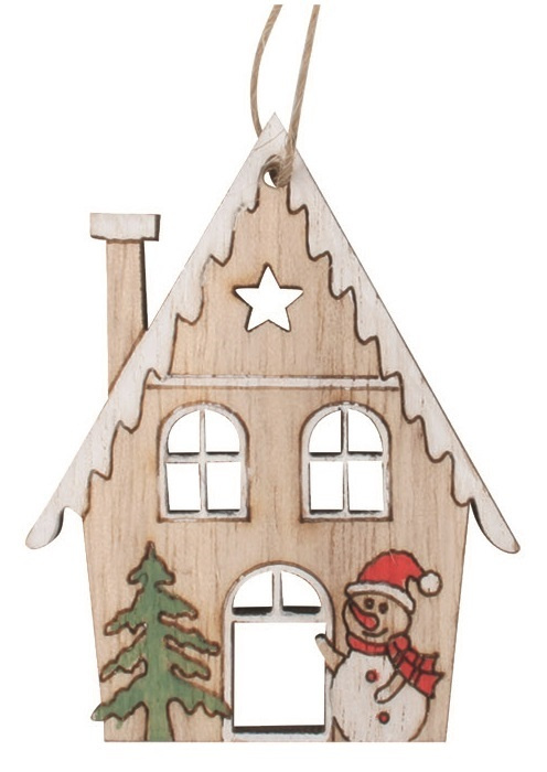 Domek se sněhulákem dřevěný na zavěšení 9,5 x 12 x 0,5 cm Anděl Přerov s.r.o.