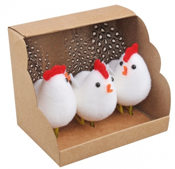 Slepičky bílé 6 cm, 3 ks v papírové krabičce Anděl Přerov s.r.o.