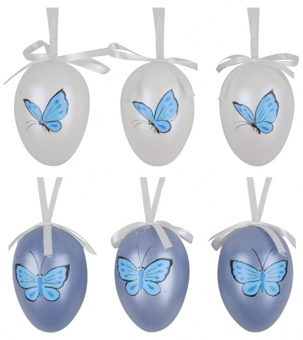 Vajíčka modrobílá s motýlky 6 cm, 6 ks v sáčku Anděl Přerov s.r.o.