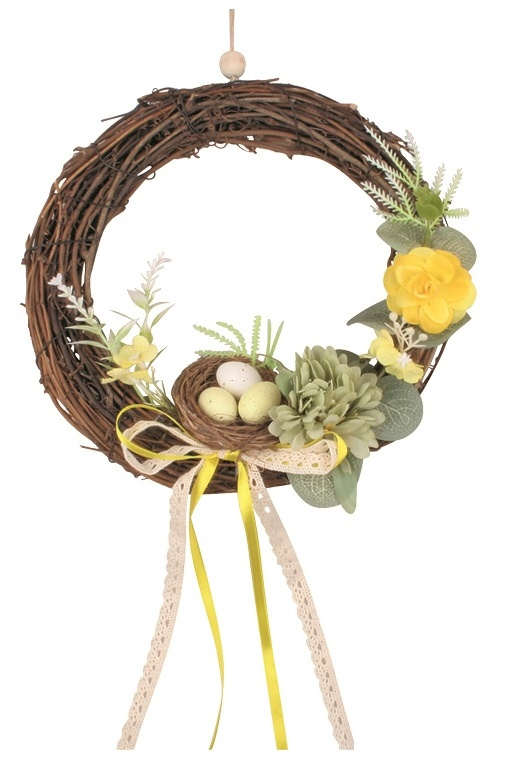 Věnec s dekoracemi a hnízdem 20 cm, žlutá stuha Anděl Přerov s.r.o.