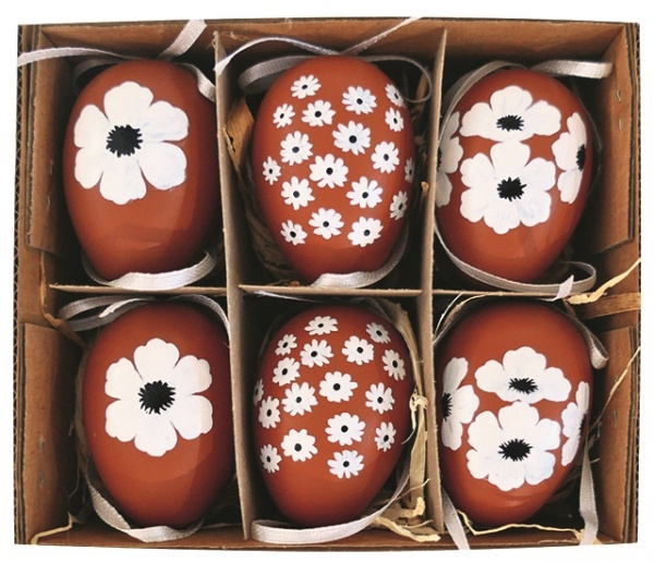 Vajíčka plastová hnědá na zavěšení 6 cm, 6 ks v krabičce Anděl Přerov s.r.o.