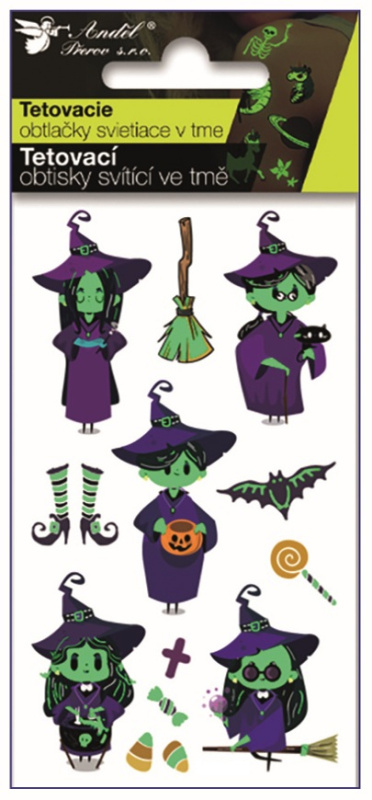 Tetovací obtisky svítící ve tmě Čarodějky 10,5 x 6 cm Anděl Přerov s.r.o.