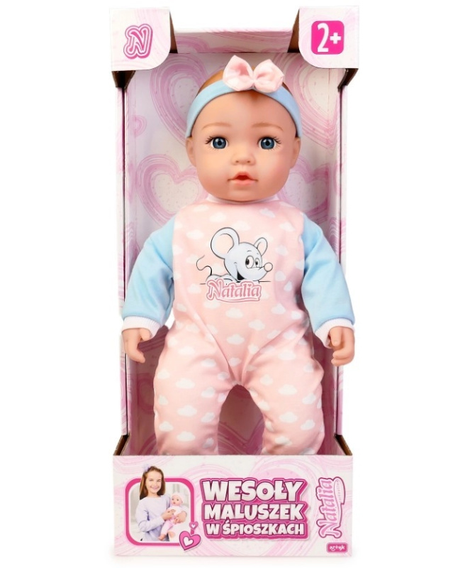 Panenka Natalia mluvící polsky 39 cm v tmavě modré bundě
