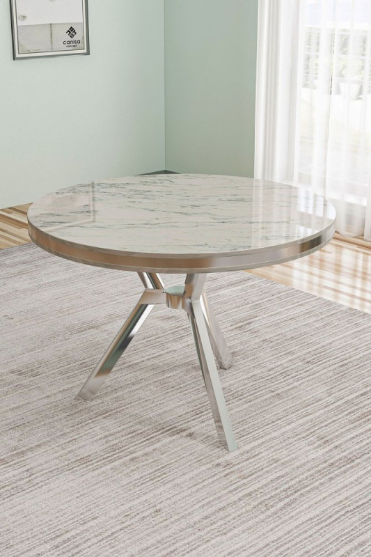 Jídelní stůl Mos - White Marble, Chrome