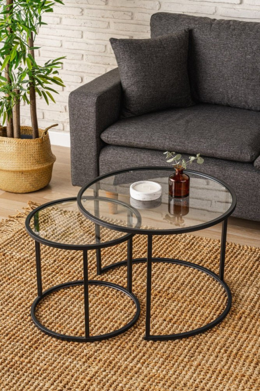 Sada odkládacích stolků (3 kusy) Alya - Black, Transparent