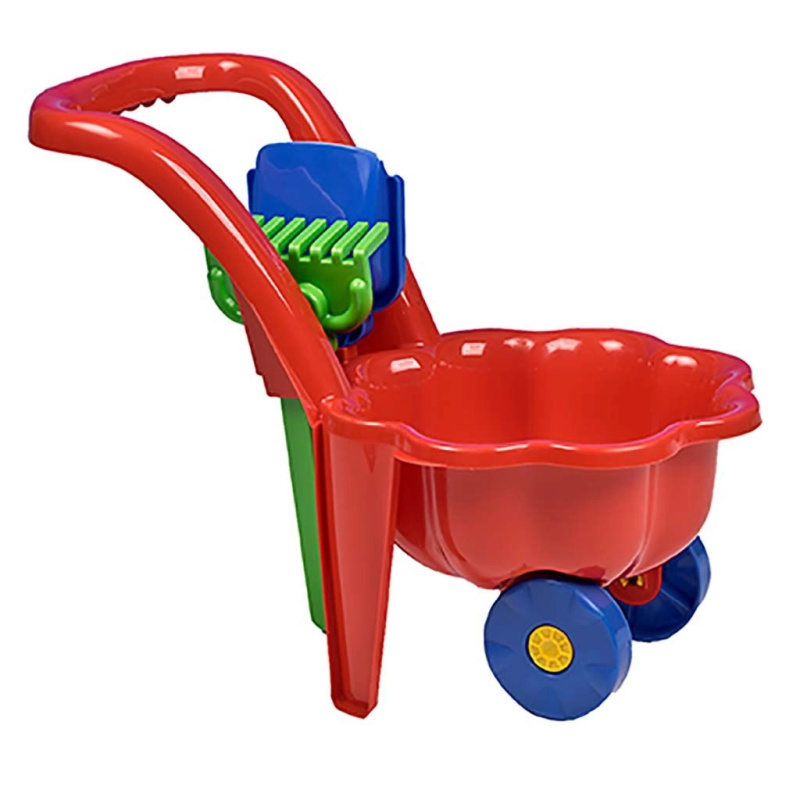 Dětský plastový vozík s tažnou rukojetí 45 cm – červený