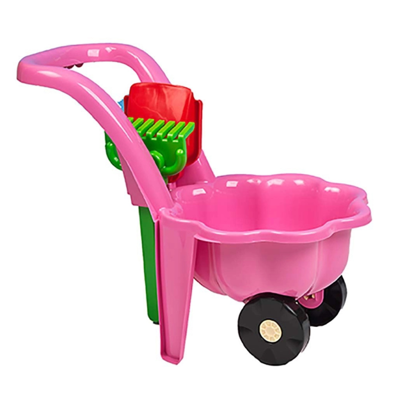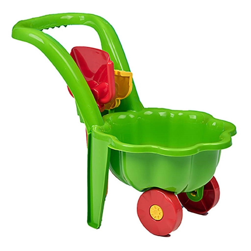 Dětský zahradní vozík s lopatkou a hrabičkami BAYO Sedmikráska zelený