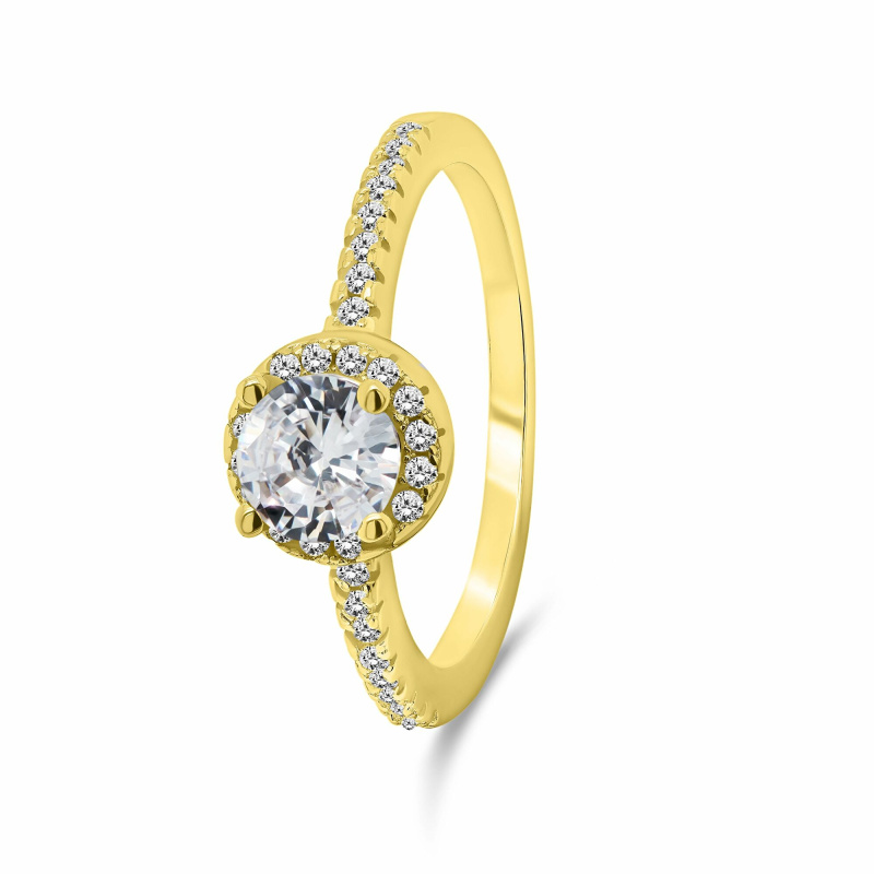 Brilio Silver Třpytivý pozlacený prsten s čirými zirkony RI059Y 60 mm