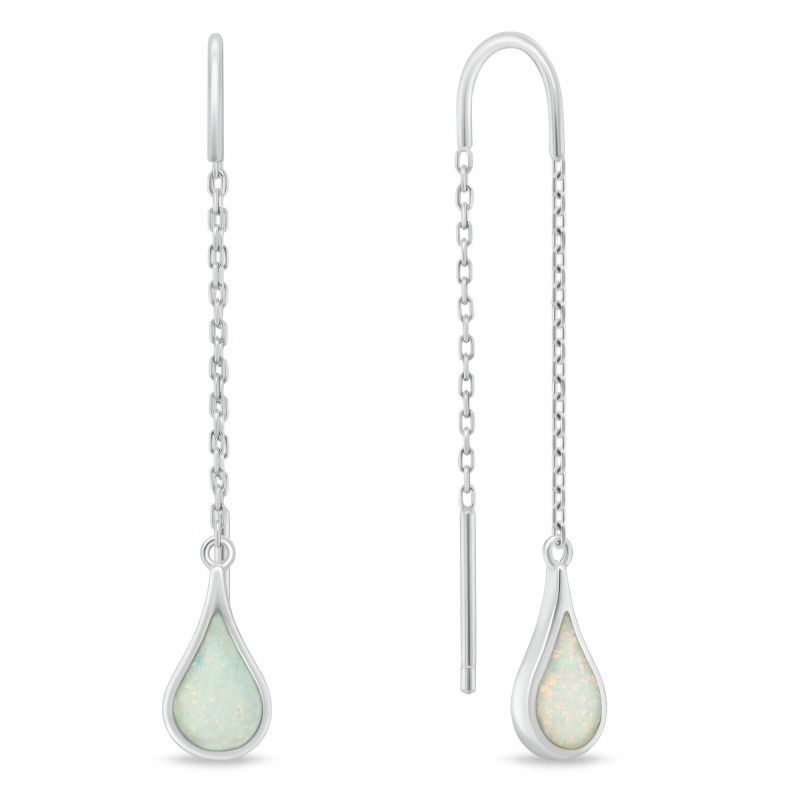 Brilio Silver Dlouhé řetízkové náušnice se syntetickým opálem EA1243W