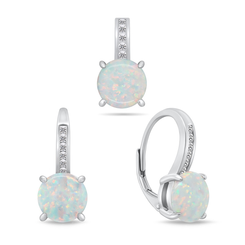 Brilio Silver Nadčasový set šperků s opály SET246W (náušnice, přívěsek)