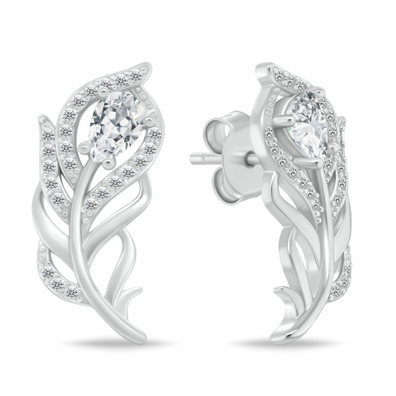 Brilio Silver Oslnivé stříbrné náušnice Peříčka se zirkony EA1202W