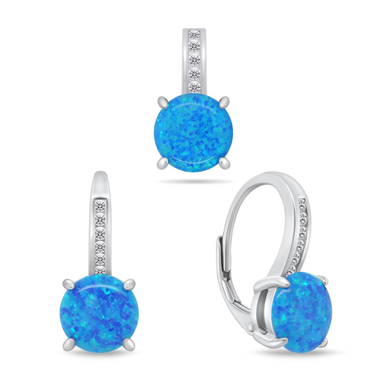 Brilio Silver Nadčasový set šperků s opály SET246WB (náušnice, přívěsek)