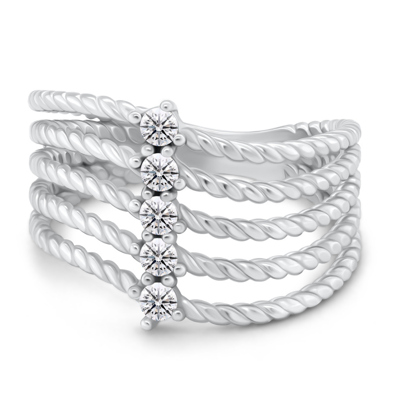Brilio Silver Pětiřadý stříbrný prsten s čirými zirkony RI145W 52 mm